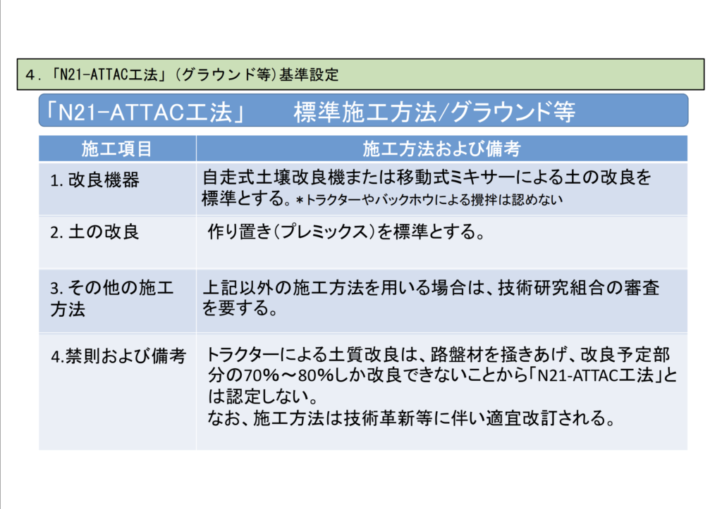 [トラクター、バックホウで、トース土に改良できますか?]といったご質問がありました。2021年12月に行われた新技術説明会で「N21-ATTAC工法」施工項目の中で、「トラクターやバックホウによる撹拌は認めない」と説明しています。品質を確保するための基準設定を規定しています。 2024年11月20日 最終更新日時 : 2026年2月20日 rirydesign \ 最新情報をチェック / FacebookXBlueskyHatenaCopy