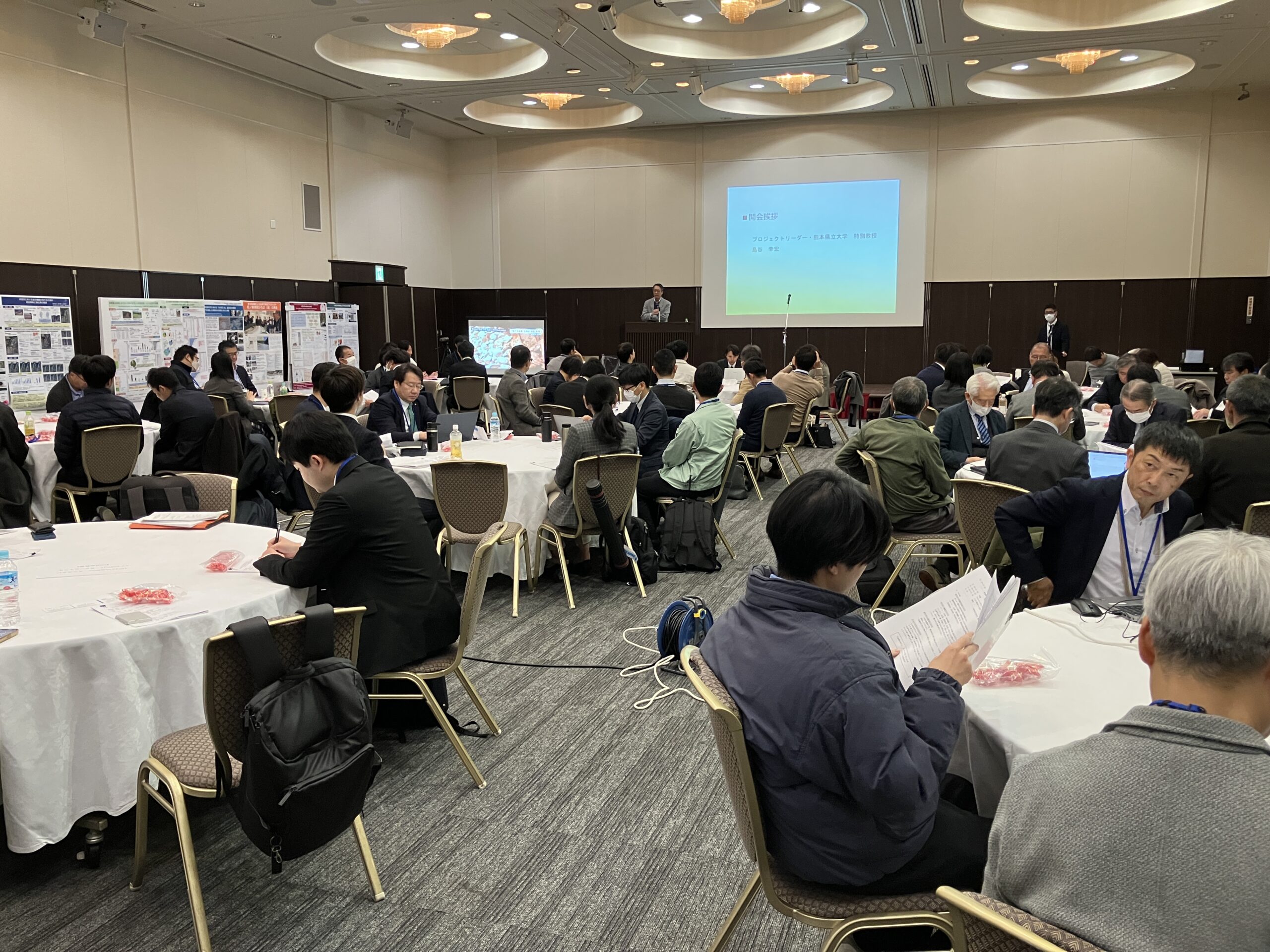 12月6日(土)と12月7日(日)の両日、熊本市内ホテル熊本テルサにて開催された、JST共創の場形成支援プログラム全体会議(島谷幸宏特別教授プロジェクト・リーダー)に、各大学・研究機関・自治体・企業・民間団体から120名程の方々と一緒に当組合から(株)シーマコンサルタント、河口建設(株)、(株)フクユー緑地の皆様が参加し、ポスター発表や、パネルディスカッションをされました。「共創の流域治水の未来について」その多様性と可能性、そして確実に減災に寄与する取り組みに臨まれている皆様の熱量を感じました。