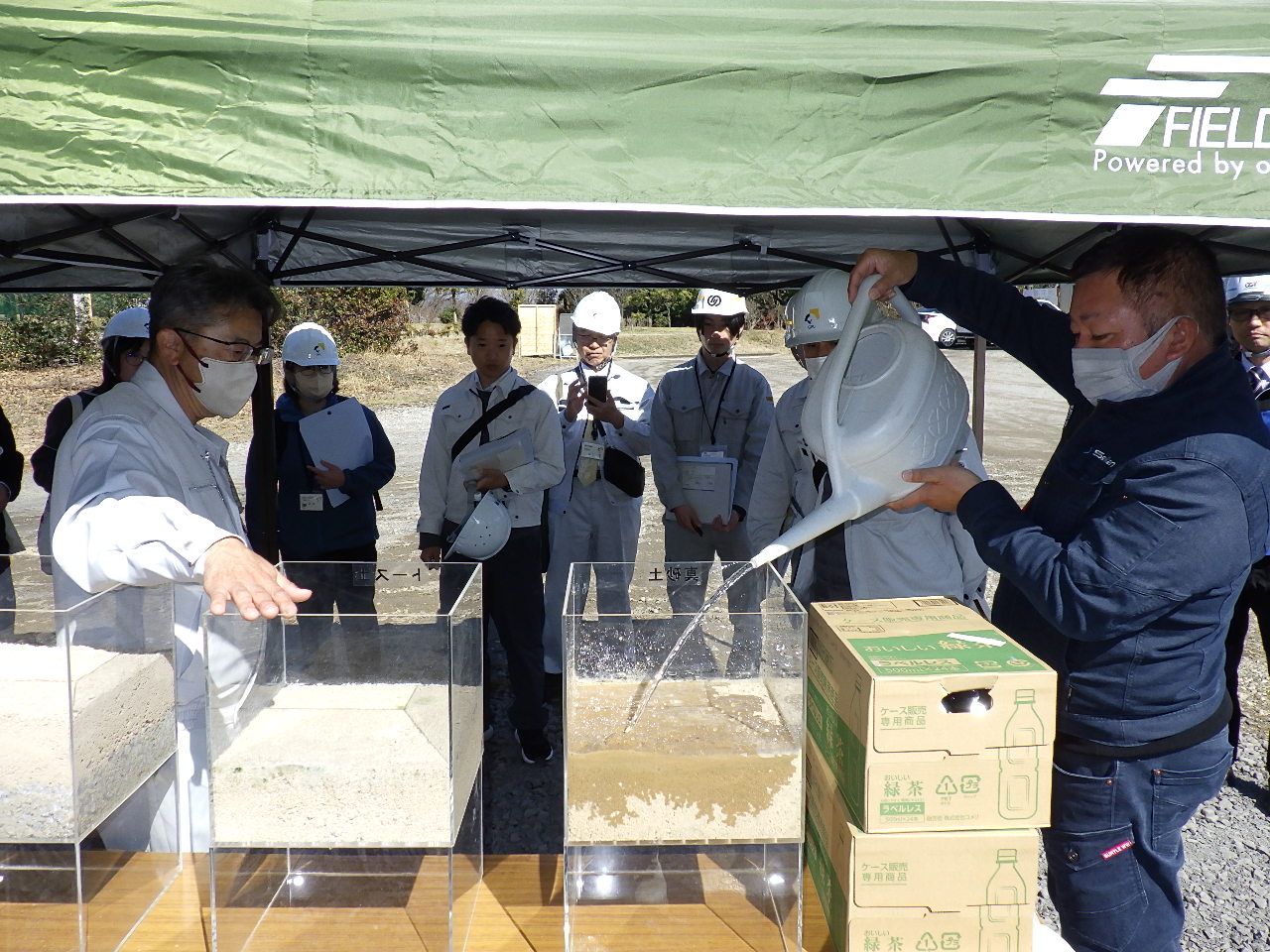 2月26日(木)に「ぎふ清流里山公園」トース土施工現場に、県・土木事務所の方々が見学に来られました。施工現場やテント内での模型説明に熱心に目と耳を傾けておられました。トース土の良さをご理解いただいて、岐阜県内に拡がることを期待いたします。