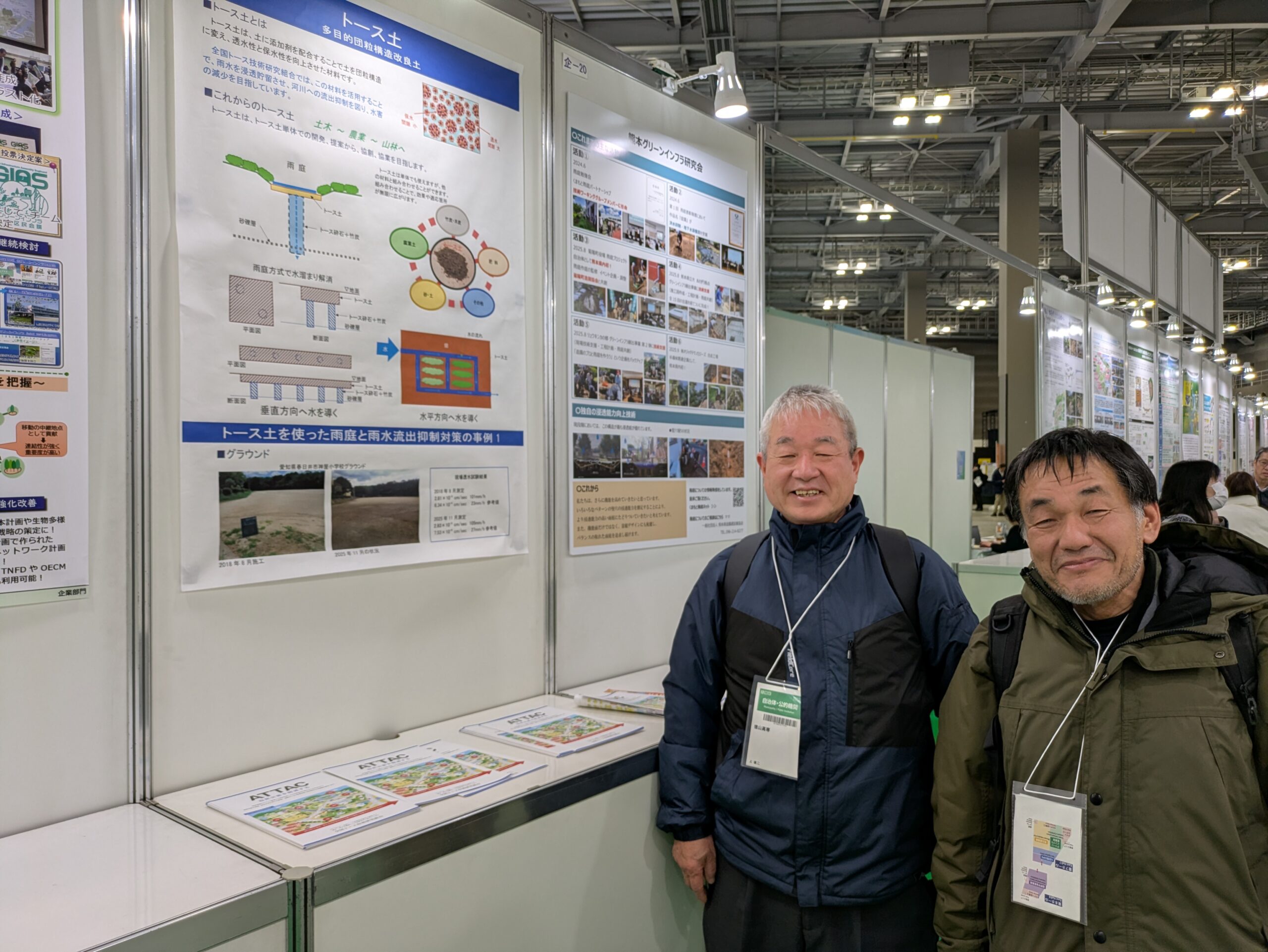 1月28日(水)~1月30日(金)に開催されたグリーンインフラ産業展2026にパネルとポスター展示で参加いたしました。東京ビッグサイトでは他に、防災産業展2026・2026国際宇宙産業展ISIEX・G空間EXPO2026も同時開催で、入場者も多数で活況を呈する賑わいでした。  上常務理事と福田先生も山口県から来られました。
